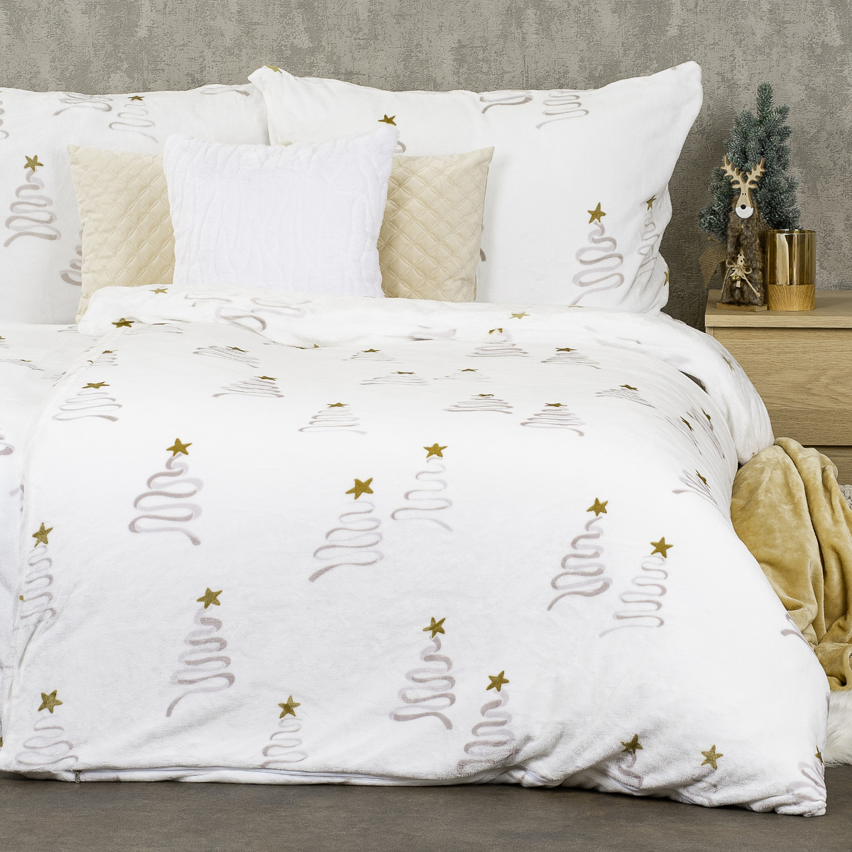 ?Vytvorte si doma sviatočnú náladu s vianočnými mikroflanelovými obliečkami Christmas tree našej privátnej značky 4Home. Tieto obliečky v čistej bielej farbe sú zdobené štylizovanými vianočnými stromčekmi. Vyrobené sú z mikroflanelu, vďaka čomu poskytujú neobyčajné pohodlie a jemný dotyk, ktorý si zamilujete.Obliečky majú štandardné rozmery pre jednolôžko, perina meria 140 x 200 cm a vankúš 70 x 90 cm. Zapínanie na zips zaisťuje jednoduchú výmenu obliečok. Ideálny vianočný darček, ktorý prinesie zimné kúzlo do každej spálne.Hlavné výhody produktu: