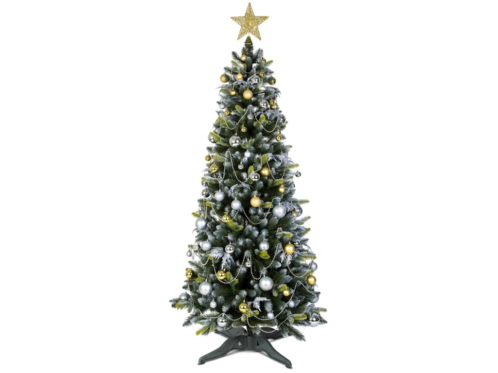 Dakota Gold Classic spája teplé zlaté tóny so striebornými detailmi, čím vytvára bohatý, tradičný vzhľad plný sviatočnej noblesy. Rôzne veľkosti gulí, korálkové reťaze a dekoračné prvky sú vybrané tak, aby na stromčeku pôsobili vyvážene bez nutnosti ďalších nákupov. Jednoduché rozloženie aj zavesenie ozdôb znamená, že výzdobu zvládnete za pár minút. Stabilné vetvy unesú aj výraznejšie dekorácie a držia tvar počas celej sezóny. Po sviatkoch ozdoby pohodlne uložíte a na ďalší rok opäť vytiahnete pripravenú, nadčasovú kombináciu.