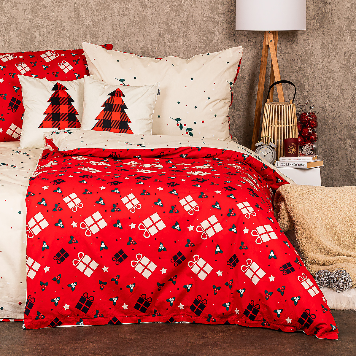 ?Bavlnené obliečky pre dokonalú sviatočnú atmosféru aj v spálni. Vianočné obliečky v červeno-krémovej kombinácii s množstvom tematických motívov zaručene prinesú isté čarovné sny plné vianočnej radosti a cinkanie rolničiek. Mäkká a príjemná 100% bavlna vám zaistí pohodlný spánok.Obliečky sú obojstranné – z jednej strany červené s veselým motívom vianočných darčekov, druhá strana je v decentnej krémovej farbe ozdobená jemným motívom cezmíny. Ideálne spojenie pre kreatívne kombinovanie. Pre maximálne pohodlie majú obliečky praktické zapínanie na zips. Súprava obsahuje: